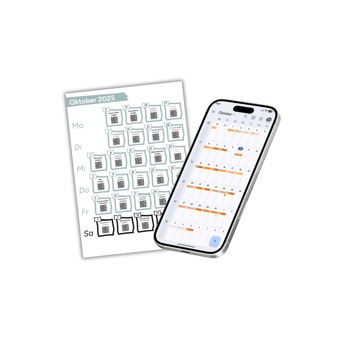Einige, wenige Kalender (wie z. B. TimeTree) unterstützen das System leider noch nicht. In diesem Fall müsstest du also den Google-/Apple-Kalender nutzen oder die ausgedruckte Variante verwenden.