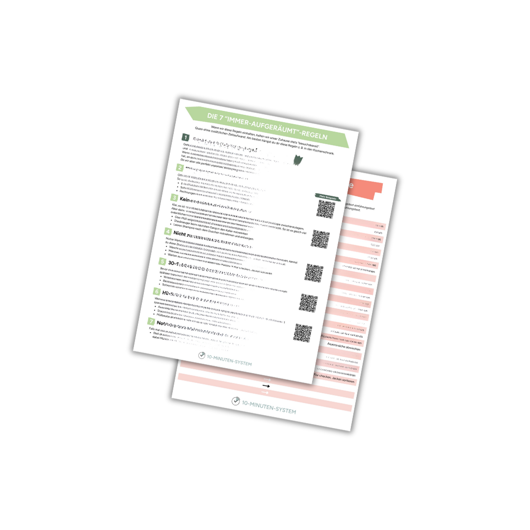 Ob „Immer-aufgeräumt“-Prinzipien, Wartezeiten-Inspiration oder nützliche Mini-Aufgaben für passende Momente: die Checklisten helfen dir, nichts zu vergessen.