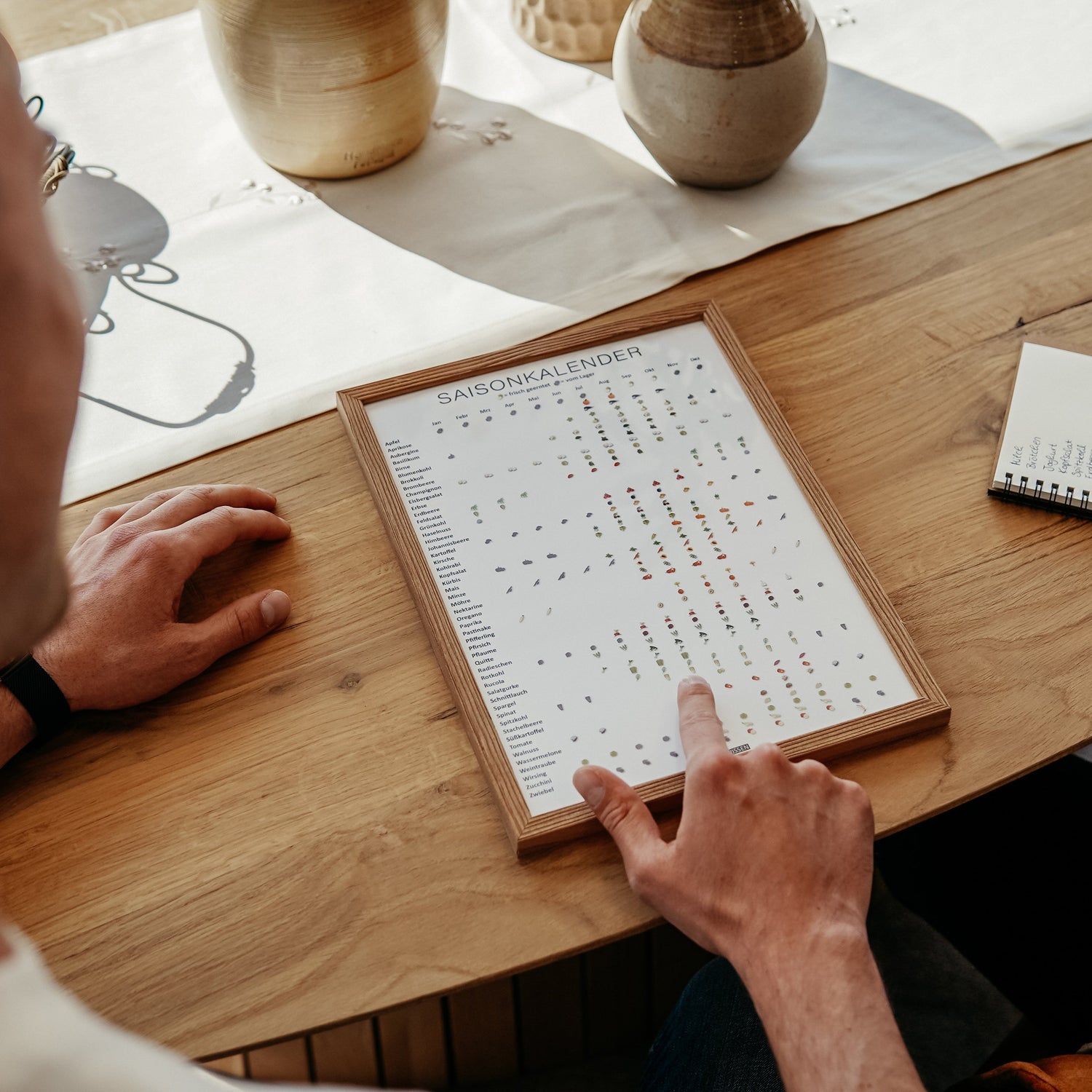 - Wie kann ich den Saisonkalender am besten nutzen? Hänge den Saisonkalender gut sichtbar in deiner Küche auf. So hast du ihn immer griffbereit, wenn du deinen Einkauf planst oder Rezepte auswählst. Unser Kalender ist übersichtlich gestaltet und leicht verständlich, sodass du auf einen Blick siehst, welche Produkte gerade Saison haben.